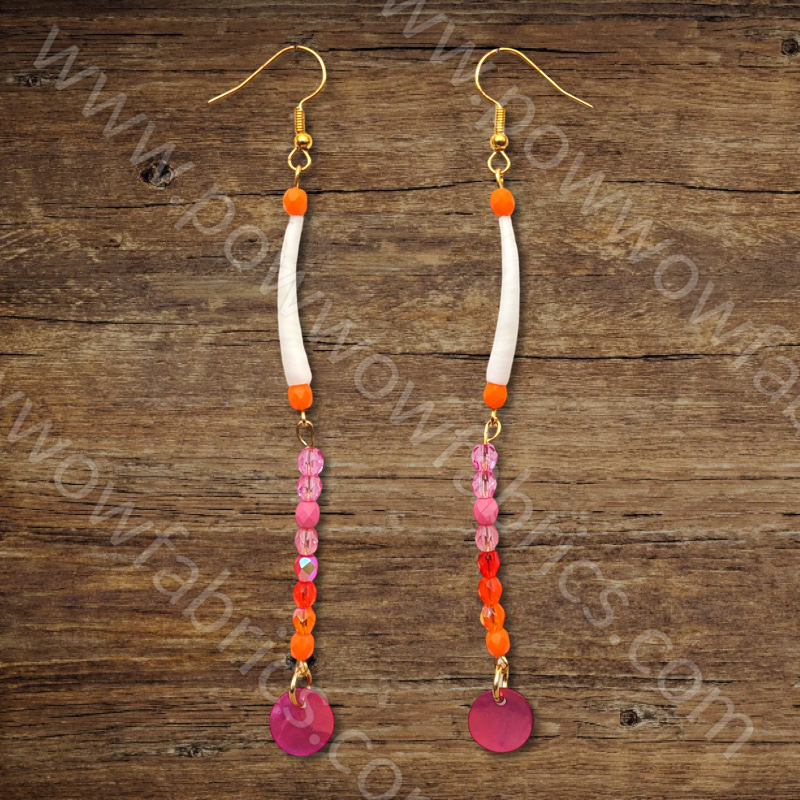 One tier single dentalia with 8 Preciosa 2mm glass fire polished AB finish beads with coral discs |