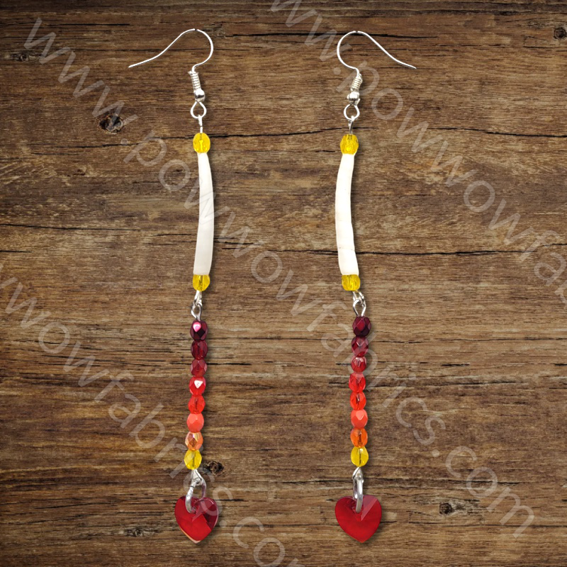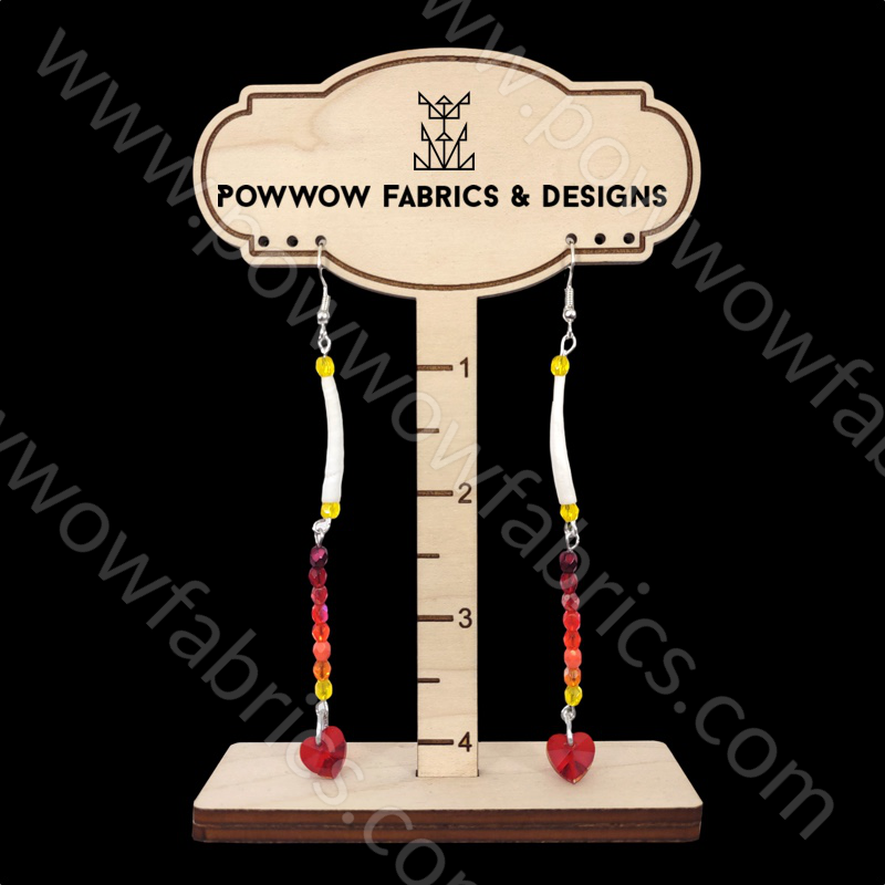 One tier single dentalia with 8 Preciosa 2mm glass fire polished AB finish beads with red glass hearts |