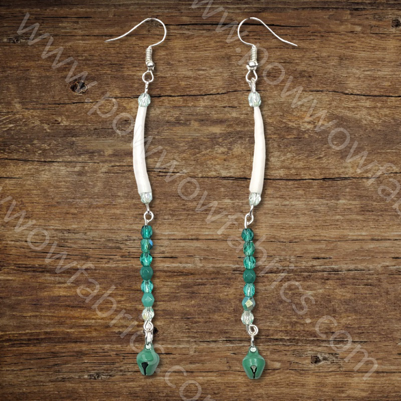 One tier single dentalia with 7 Preciosa 2mm glass fire polished AB finish beads with green bells |