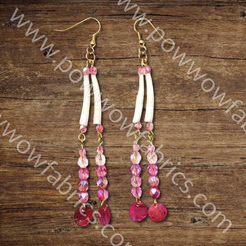 | Description | One tier single dentalia with 4 Preciosa 6mm glass fire polished AB finish beads with fuchsia mollusk disks |