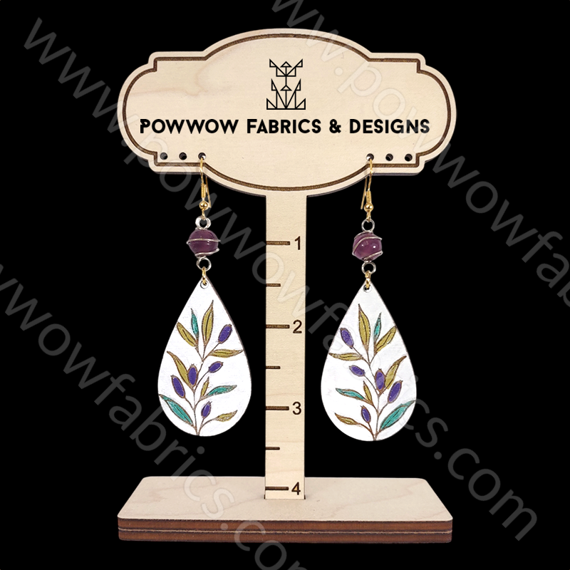 | Description | Hand painted laser cut maple plywood, lightweight earrings with 4 layers of UV protectant |