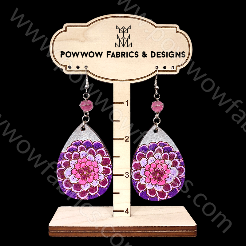 | Description | Hand painted laser cut maple plywood, lightweight earrings with 4 layers of UV protectant |